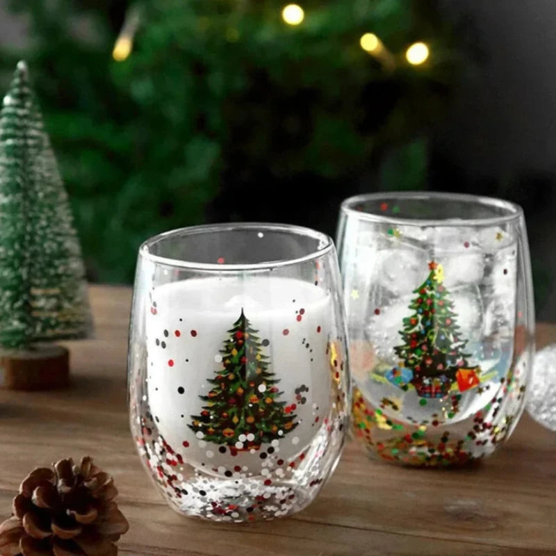 Traga a magia do Natal para suas bebidas favoritas! Nosso Copo de Vidro Duplo de Natal combina funcionalidade e encanto com três designs únicos: Árvore de Natal, Boneco de Neve e Flocos de Neve com Glitters Brilhantes.